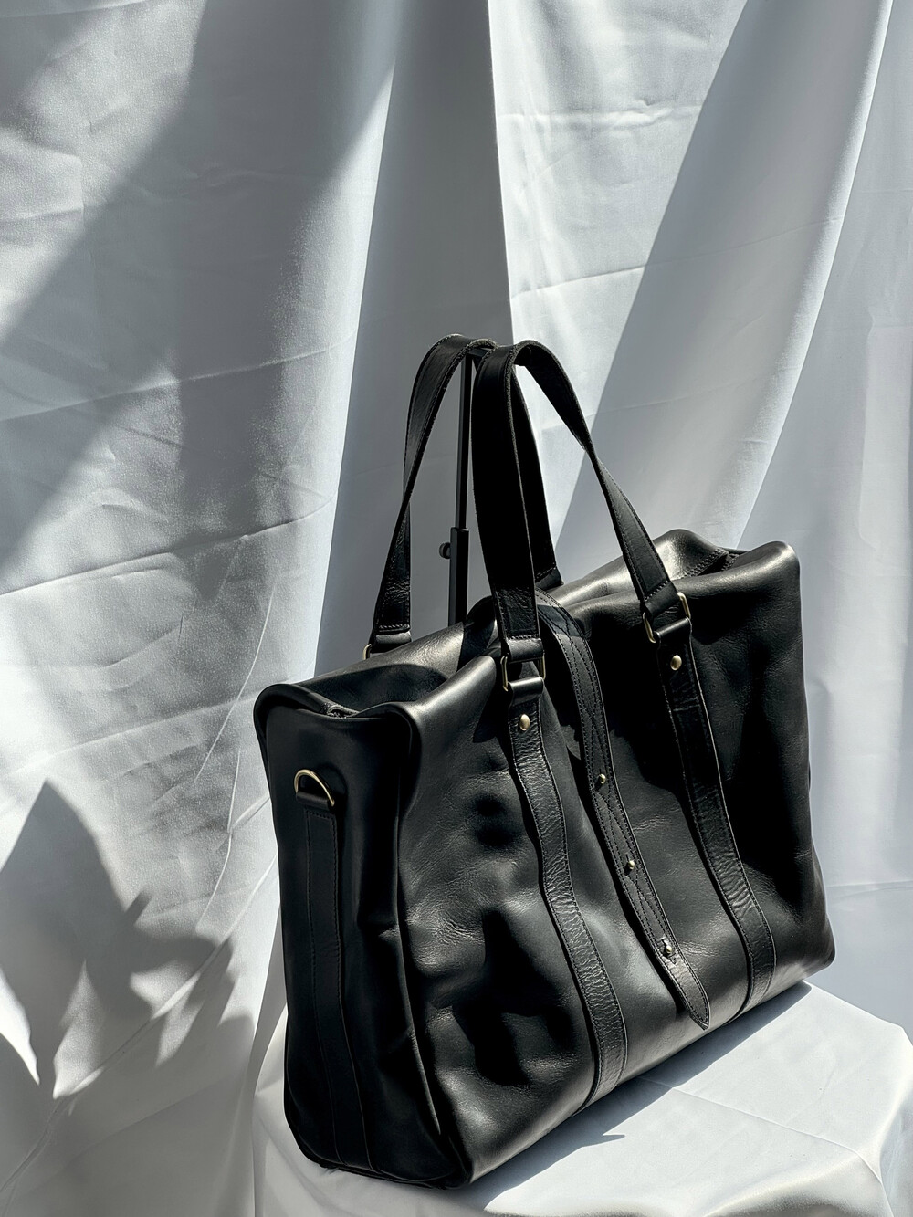 큰 사이즈의 여행용 가방이라는 기존의 인식을 벗어나 부담스럽지 않은 사이즈로 제작하였으며 시간에 흐름에 따라 아름답게 에이징되는 베지터블 가죽의 매력을 느끼실 수 있습니다.